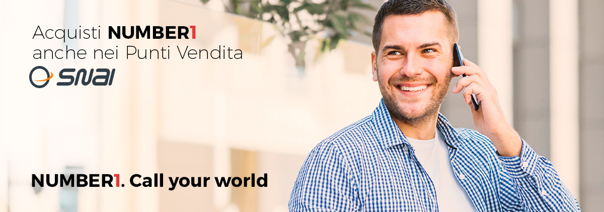 Da tutti i telefoniLa carta Number 1 funziona da qualsiasi telefonoCome funziona 1. Componi il numero verde di accesso 800 030 111 o uno dei numeri di accesso locale riportato sullo scontrino, nell'e-mail o sul retro della tua carta Number1. 2. Segui le istruzioni della guida vocale e sarai messo in contatto con il numero desiderato. Acquista subito una nuova carta Number1 presso tutti i punti vendita Esselunga o SNAI/Paymat |